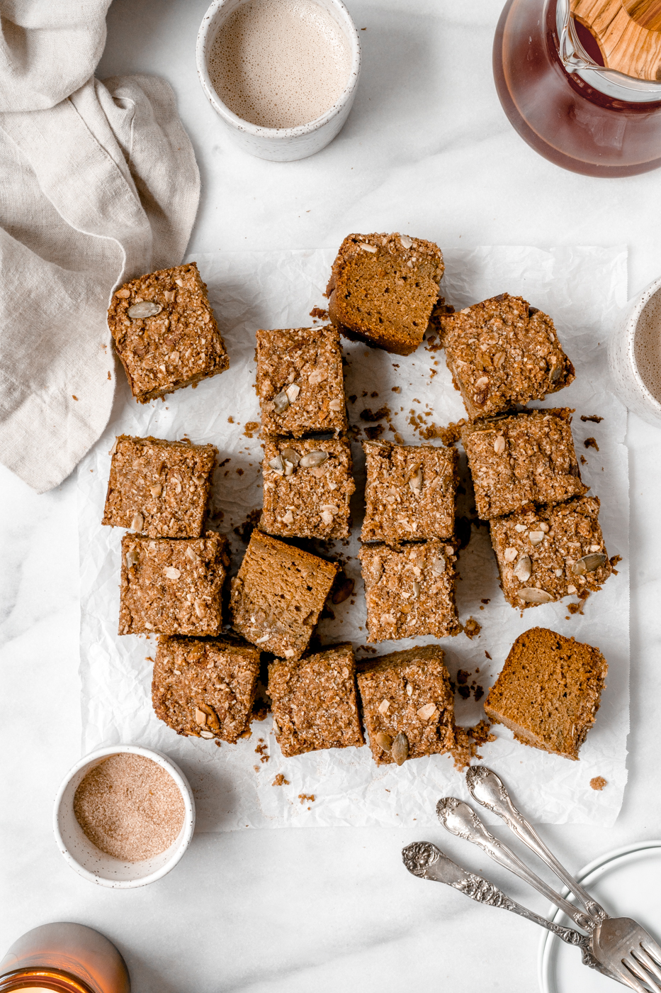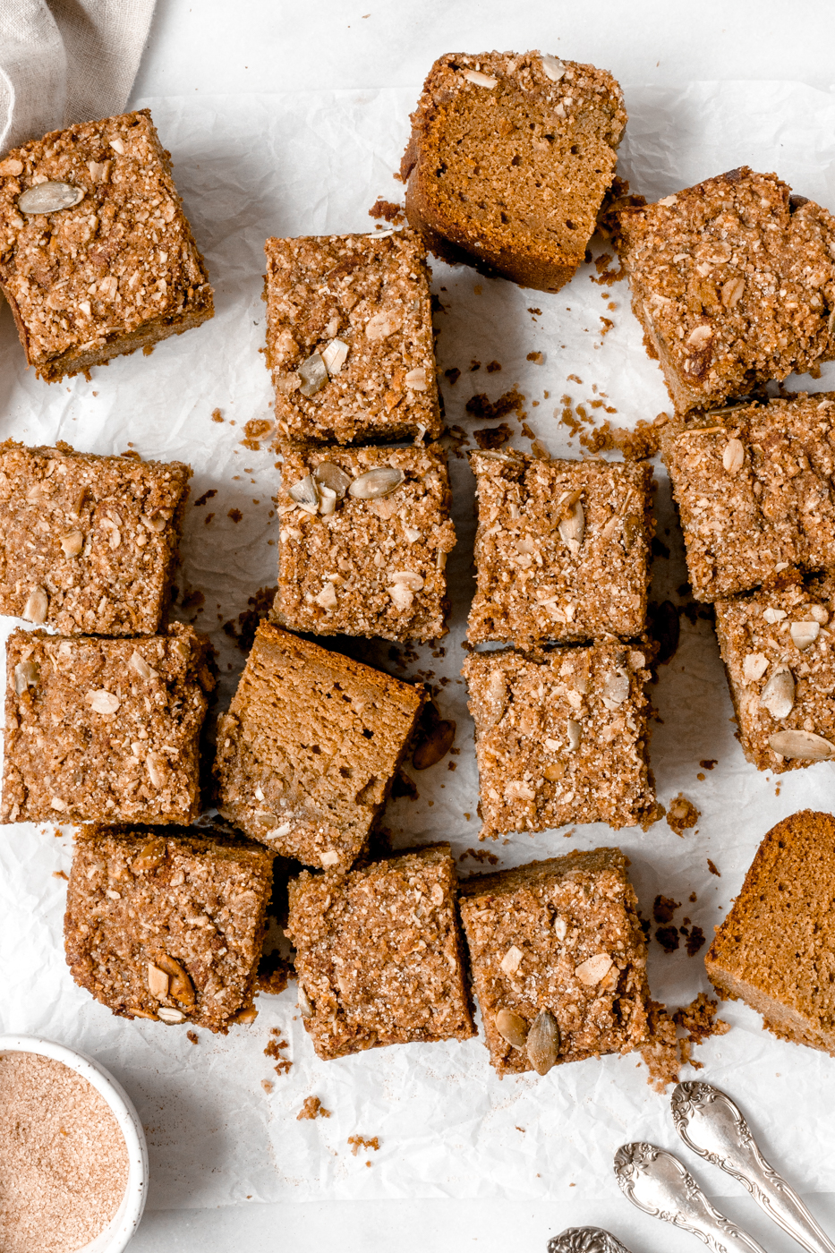 Streusel topping will take any dessert from good to great. It adds flavor and texture and is just plain delicious. The main ingredients in streusel topping are brown sugar, flour, cinnamon, salt, and butter. For this recipe, I’ve also added pumpkin seeds and gluten-free oats to make it a little heartier.