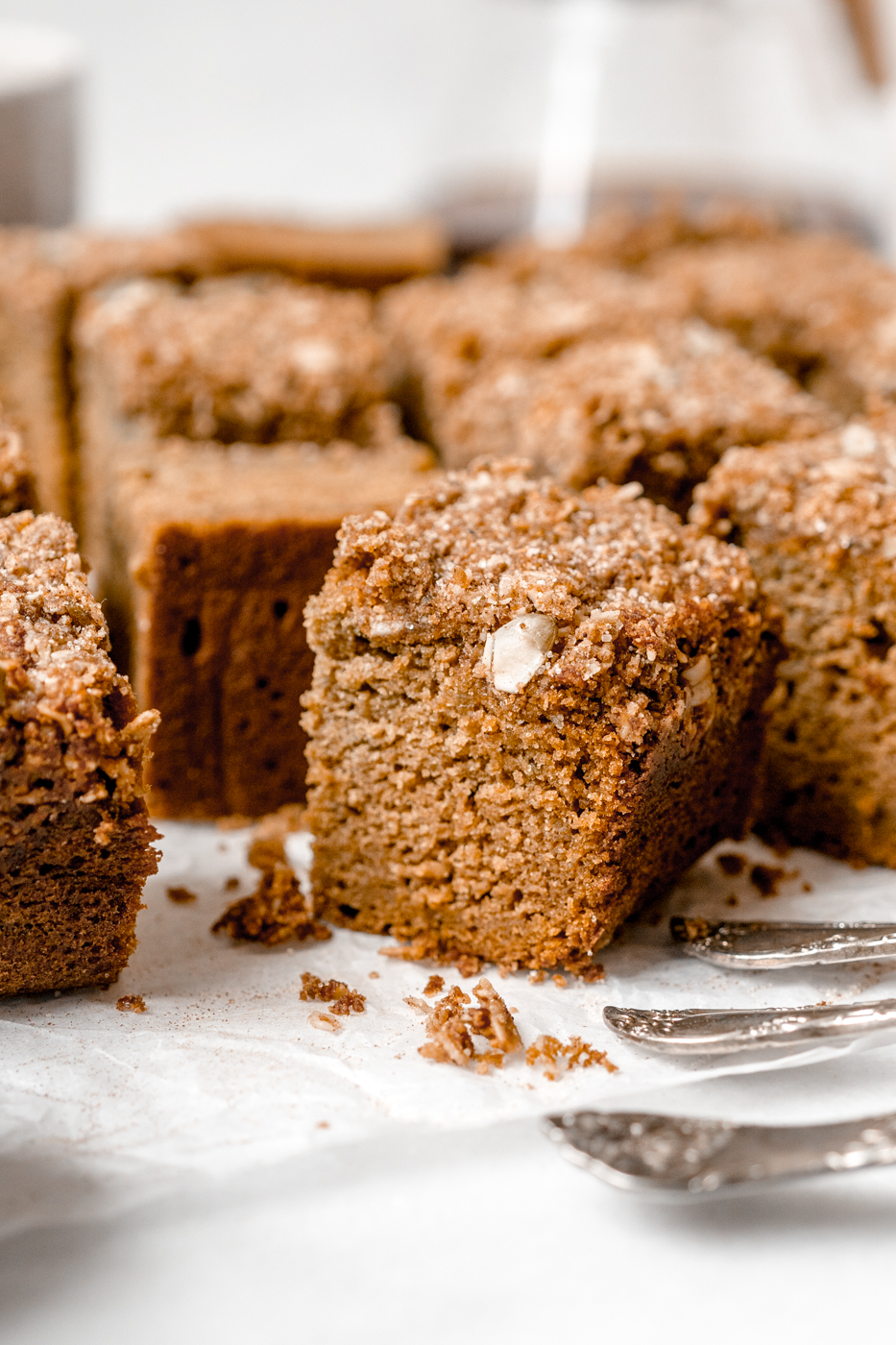 I do find that if I solely rely on a 1 to 1 gluten-free flour, this coffee cake comes out dry. To keep the cake moist, I’ve also added sunflower seed flour. Sunflower seed flour can be found at Whole Foods if you live in St. Louis, or you can order it online. I love that is is nut-free and it contributes to the crumb of the coffee cake considerably.